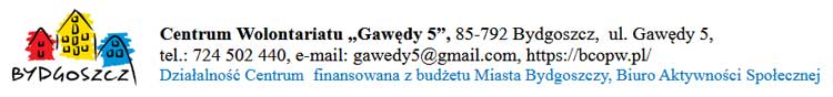 Miejsce spotkań: Centrum Wolontariatu „Gawędy 5”, ul. Gawędy 5, Bydgoszcz