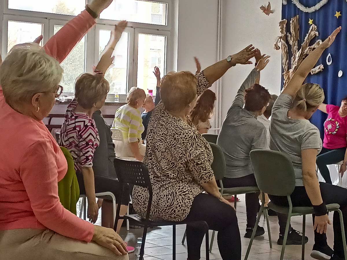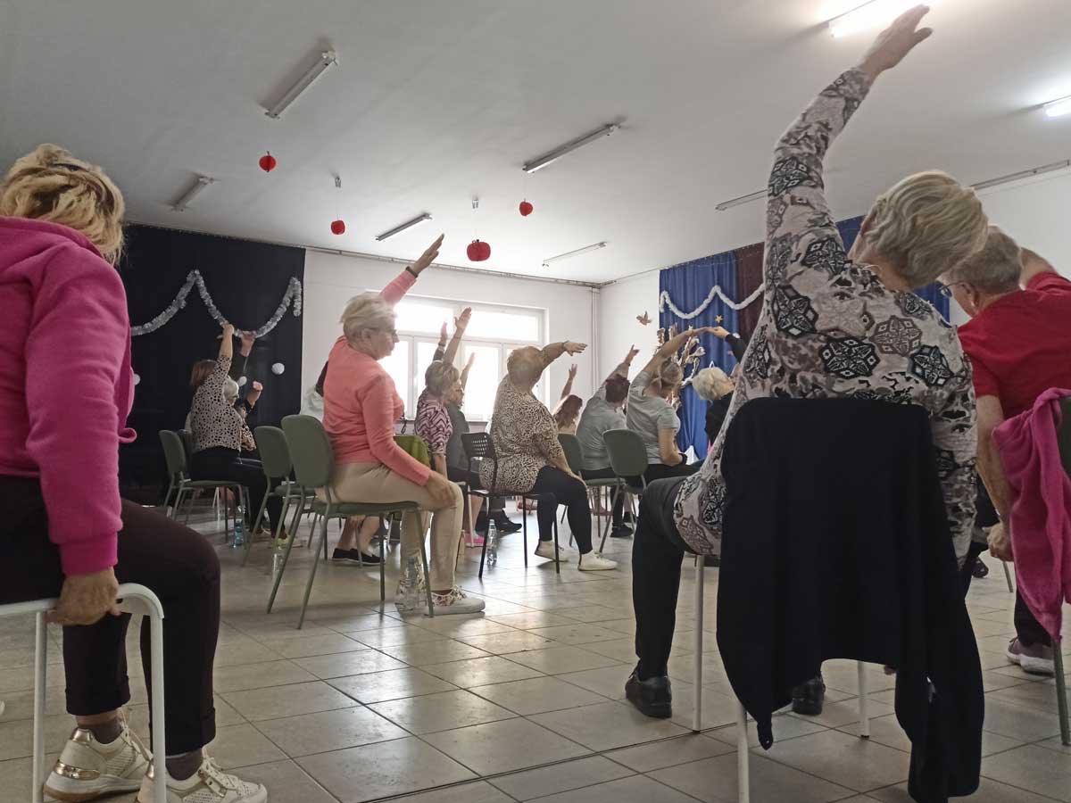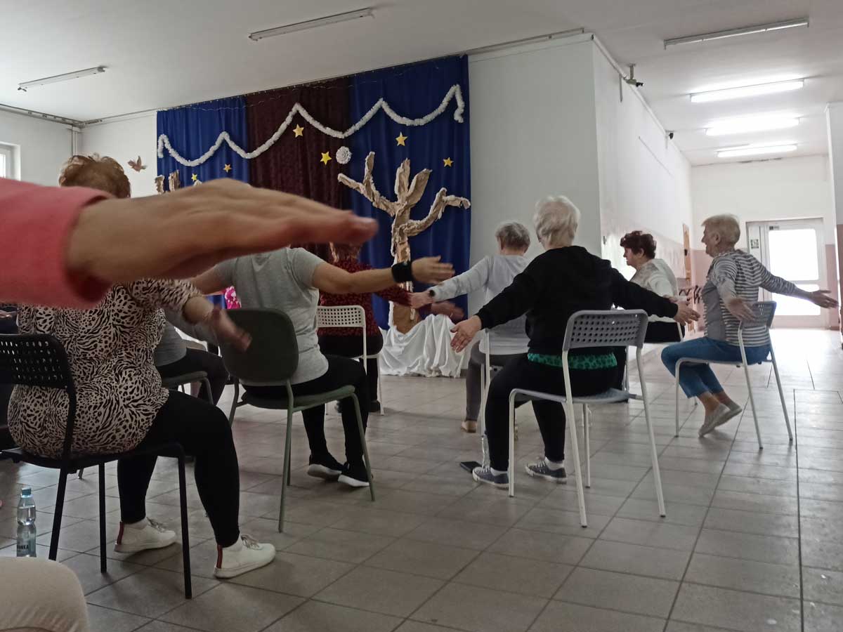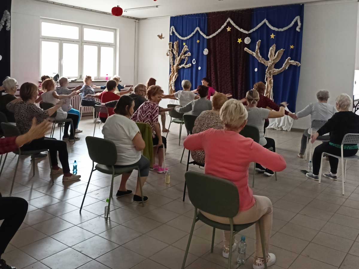 Podczas spotkania uczestnicy wykonywali ćwiczenia poprawiające kondycję i samopoczucie, a także mieli okazję porozmawiać o zdrowiu i codziennych sposobach dbania o siebie. Był to również czas integracji, rozmów i budowania dobrych relacji w przyjaznej, wspierającej atmosferze. Organizatorzy dziękują wszystkim uczestnikom za obecność i zaangażowanie oraz wolontariuszom za wsparcie i pomoc w przygotowaniu zajęć.